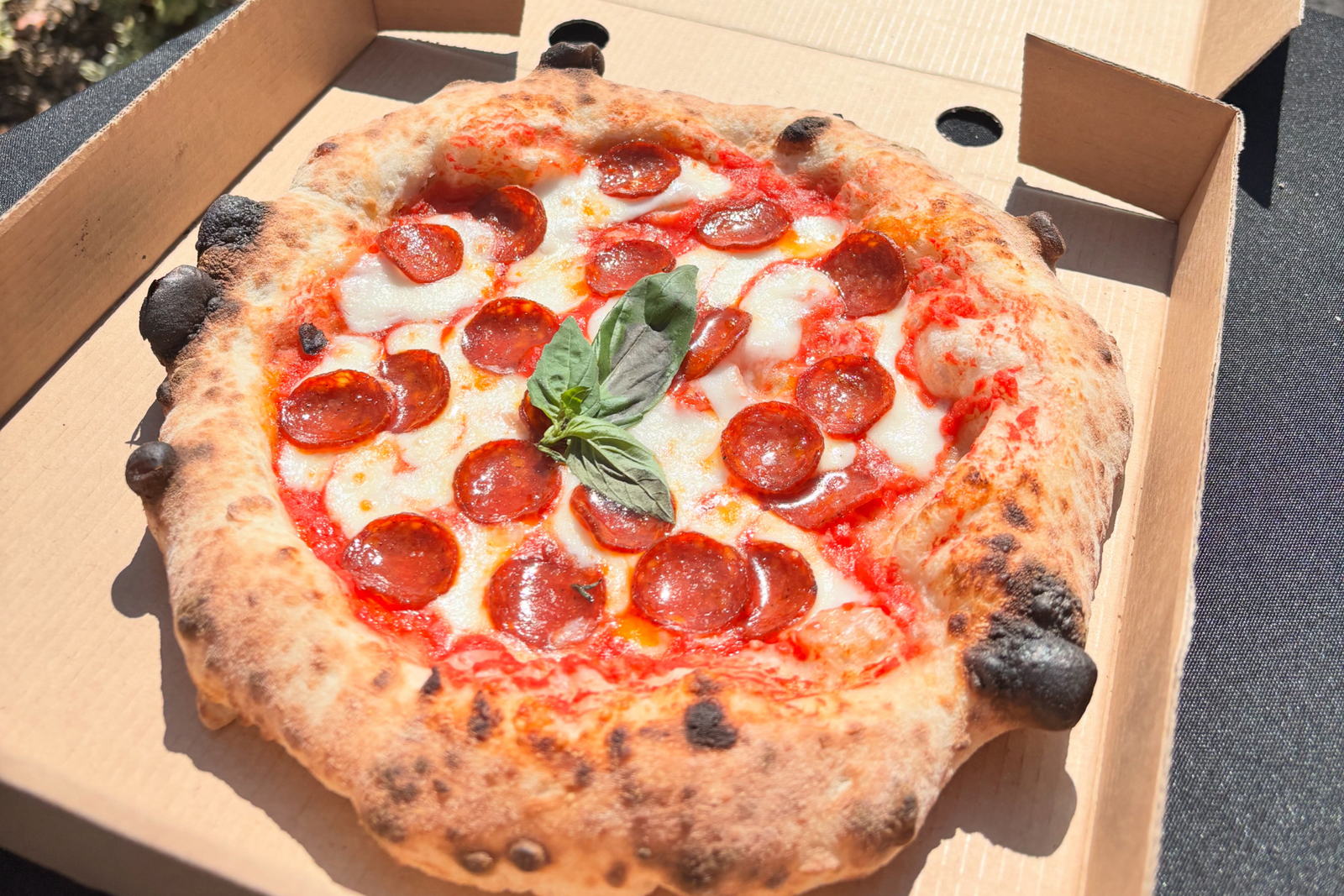 Tomato Base, Mozzarella, Gran Moravia, Spicy Sausage, Basil